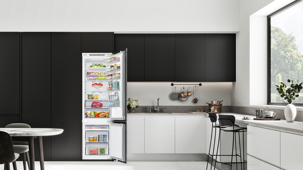 Proste linie i ukryte urządzenia nadają wnętrzu lekkości, pozwalając zachować wizualny porządek. Lodówki do zabudowy Samsung pozostają niewidoczne na pierwszy rzut oka, a jednocześnie oferują przestrzeń zaprojektowaną tak, by maksymalnie wykorzystać każdy centymetr. W wybranych modelach zastosowano np. technologię SpaceMax™, która dzięki cieńszym ściankom zwiększa pojemność bez zmiany zewnętrznych wymiarów. Efekt to harmonia między dyskretnym designem a funkcjonalnością.